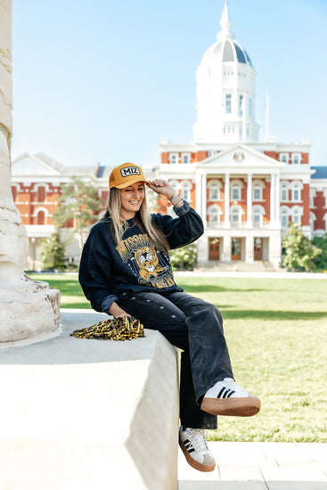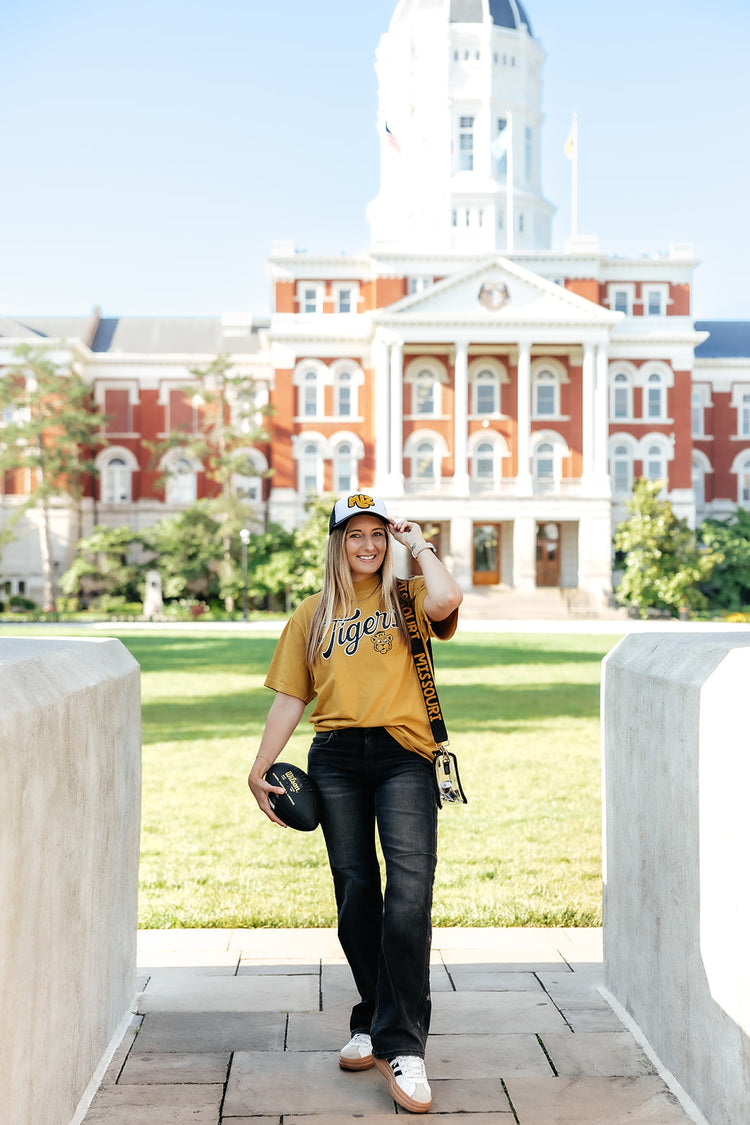 Classic black jeans but.. add a little spice! ;) We are obsessed with the subtle star detail on the side of these jeans! The PERFECT jeans for a Mizzou game day outfit this fall! Bonus: they are SO stretchy & comfy!!