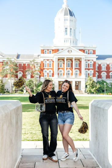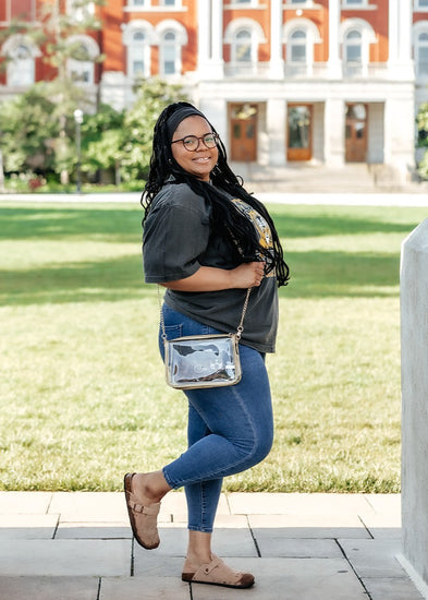This trendy clear bag is a MUST HAVE for gameday or even concerts with clear bag requirements for stadium entry! The gold clear gameday purse is the perfect way to bring in some gold to your gameday outfit - it truly matches any outfit! The size of this bag is GREAT if you need to bring in multiple items + look stylish doing it!
