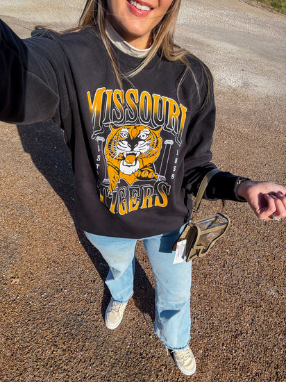 You know you NEED this vintage-inspired Missouri Tigers crewneck sweatshirt to cheer on your Tigers this season....either at the tailgate or on the couch! ;)