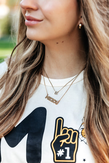 Elevate your gameday outfit with this trendy Mizzou licensed necklace! If you cheer for the Missouri Tigers, you need this necklace to match any gameday outfit you wear!