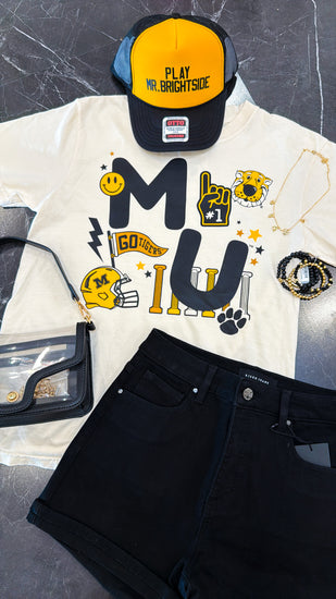 Your new go-to shorts! These classic high rise black shorts are easy to style and an absolute must-have. The tummy control waist band and flattering fit provide added comfort and confidence. A perfect addition to your summer wardrobe! Just toss on your new Missouri Tigers gameday graphic tee and you're set to standout in the stands (and be COMFORTABLE in denim - we got you!!)